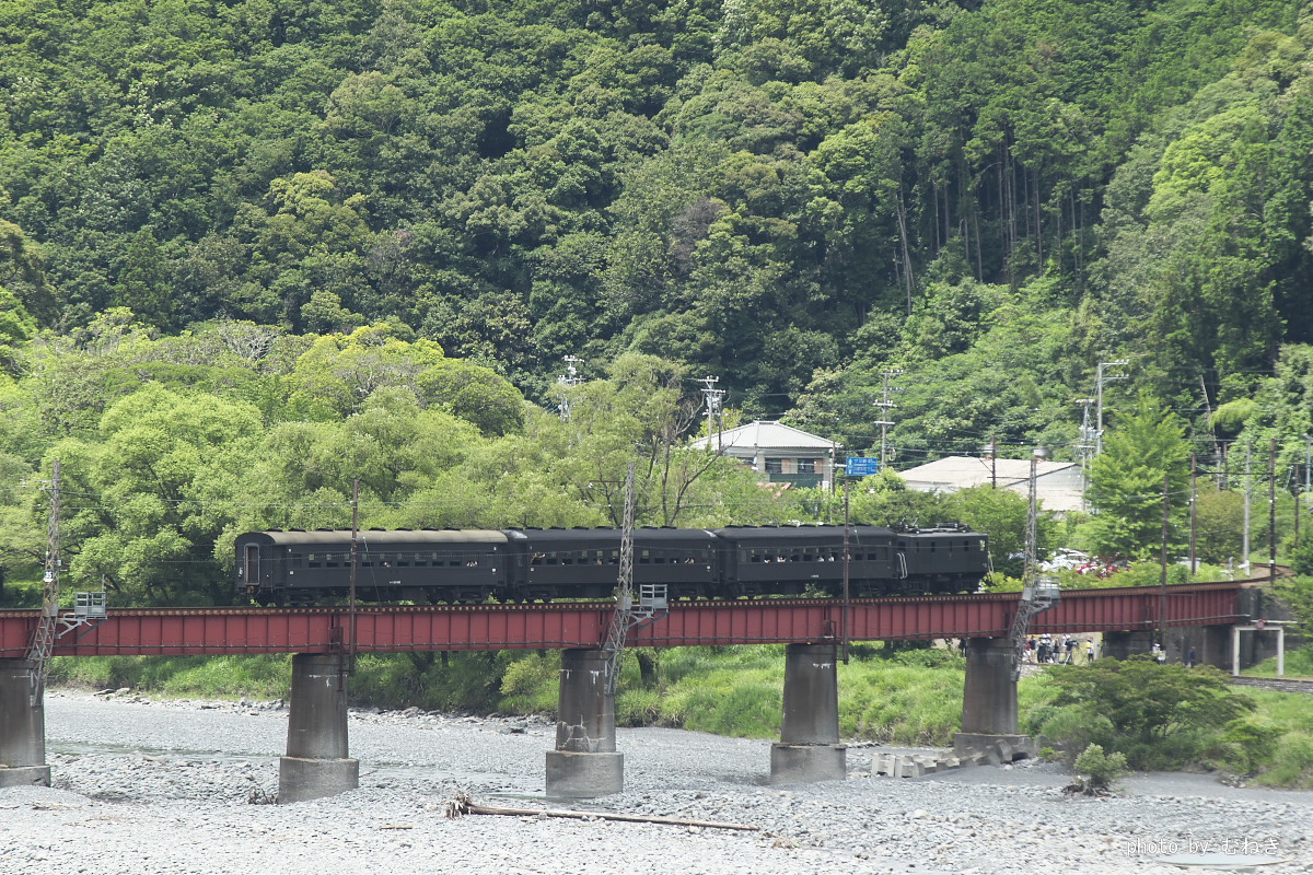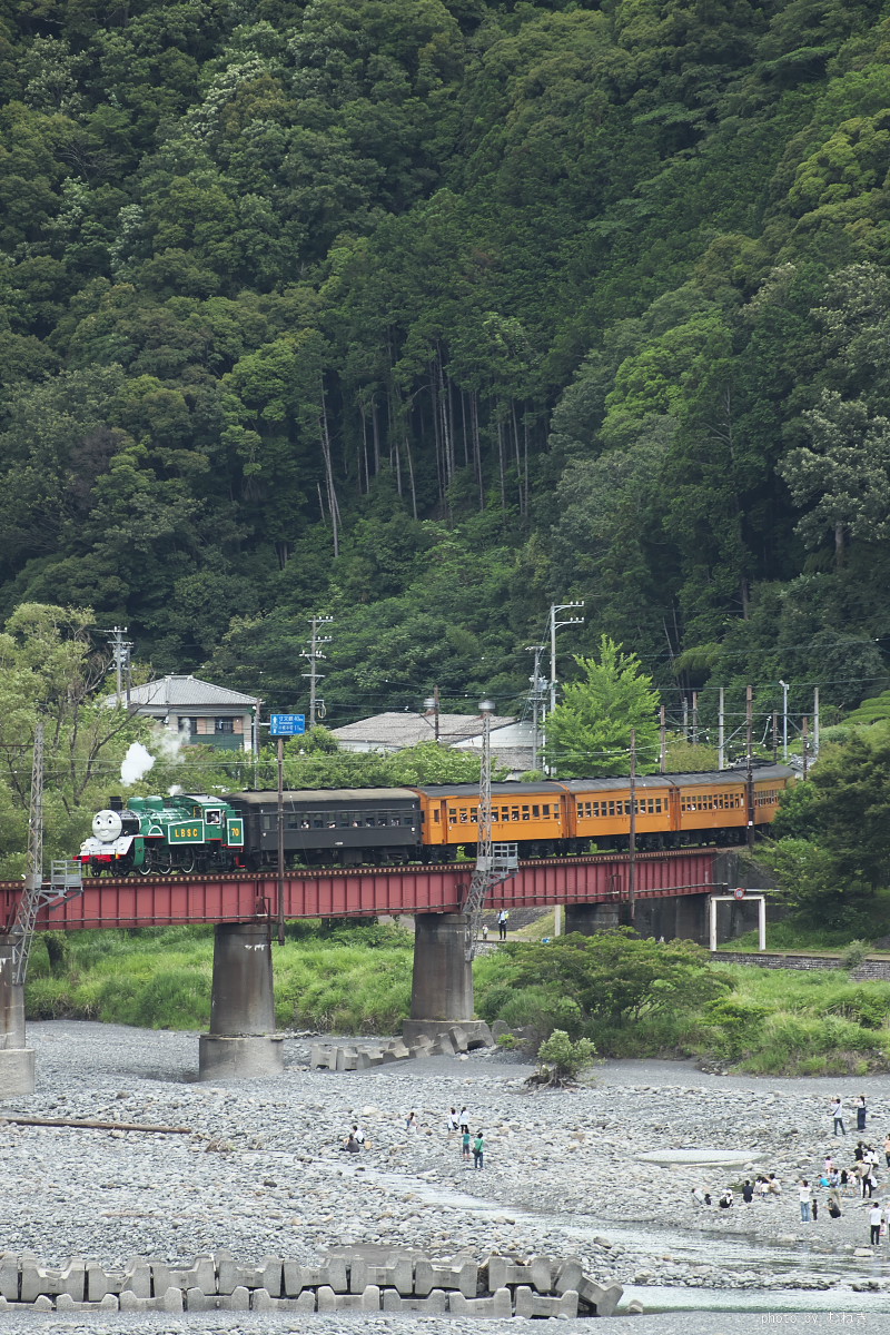 車で仮眠したあと場所移動をせずに大井川第一橋梁を渡る新金谷へ向かうみどりのトーマスを。